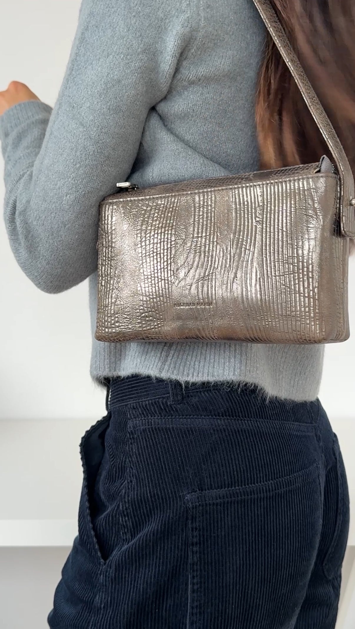 Confeccionado en piel de cordero grabada, suave, flexible y duradera, combina líneas rectas con la versatilidad que necesitas en tu día a día. Llévalo de mano para un estilo sofisticado o al hombro cuando necesitas comodidad sin renunciar a la elegancia.